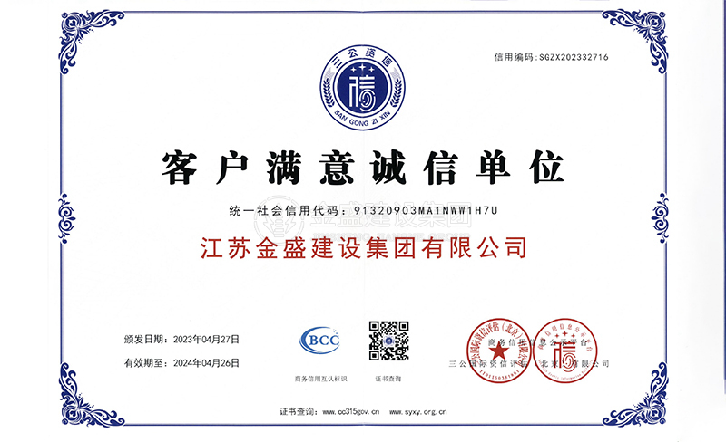 • 2007年江蘇省質(zhì)量信得過安全穩(wěn)定施工企業(yè)