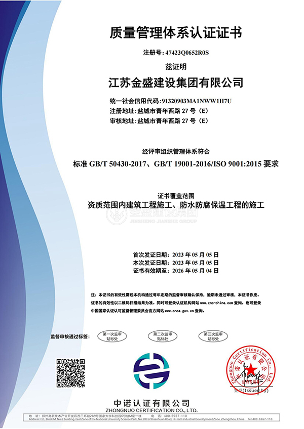 • 質(zhì)量管理體系認(rèn)證證書